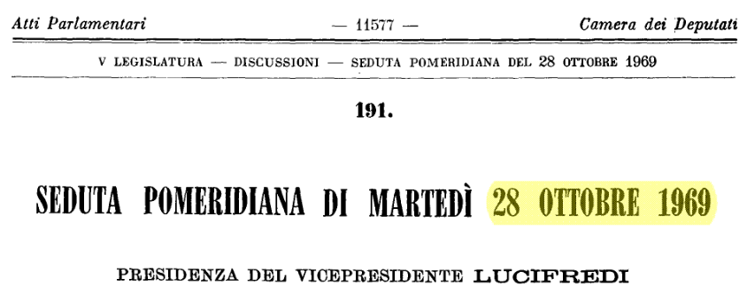 Estratto stenografico dalla seduta della Camera dei Deputati del 28 ottobre 1969.